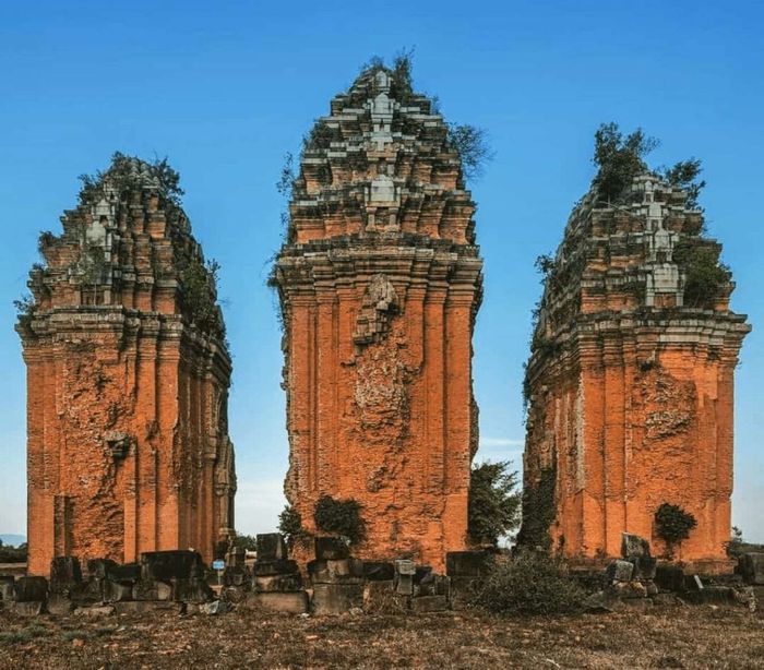 The tower boasts impressive dimensions and a distinctive shape compared to other Cham towers. This structure is a fusion of the characteristic architecture of Binh Dinh Cham and Khmer architecture. The perfect blend of Cham brick tower construction techniques and Khmer stone carving and assembling techniques has created a remarkable architectural masterpiece.