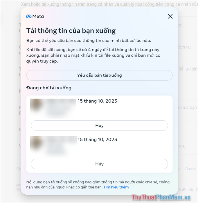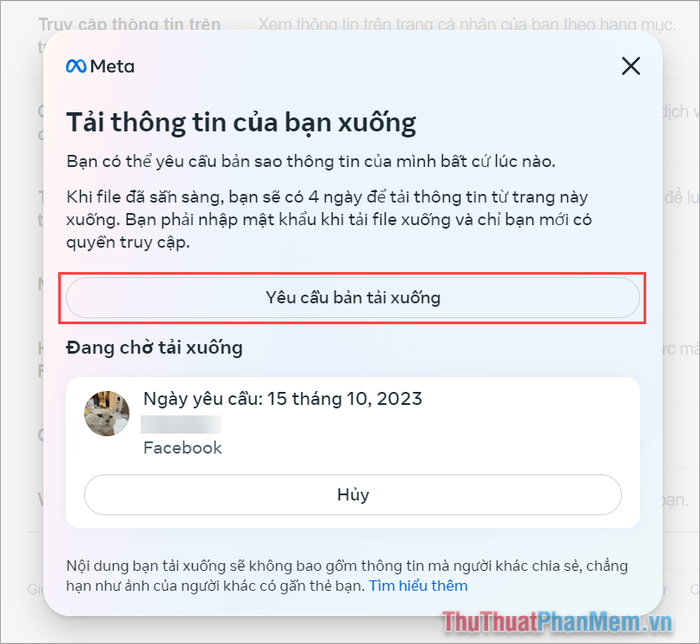 Step 4: Then, select Request Download to generate a backup of your Facebook messages.
