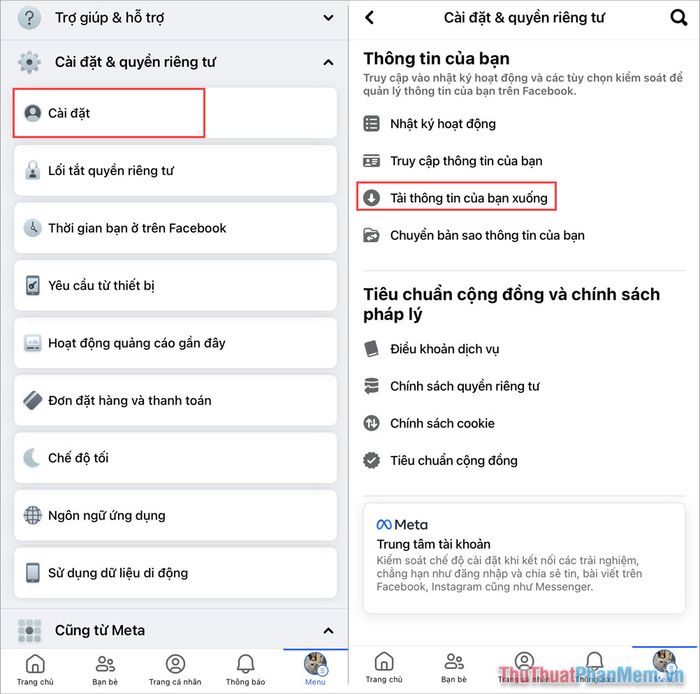 Step 1: Go to your Profile, select Settings, and choose Download Your Information.