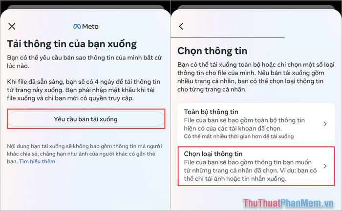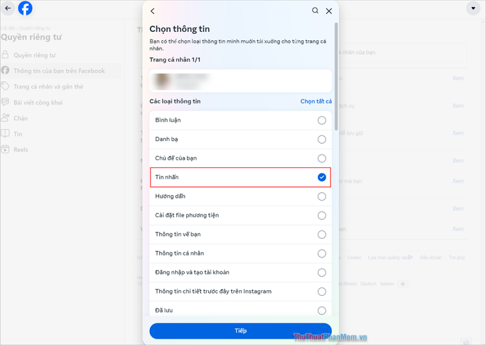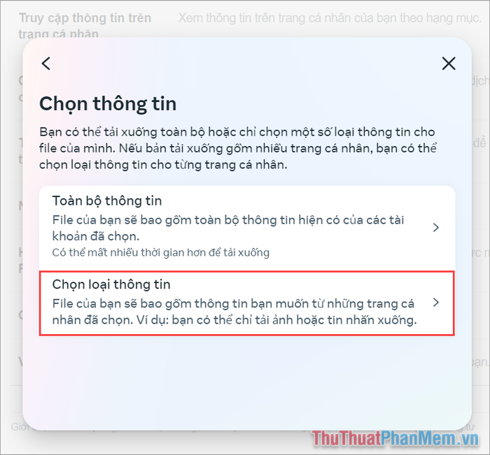 Step 2: Next, select the Download Your Information option to retrieve a backup copy of all your Facebook data. Since we're only interested in Messenger messages, choose the Select Information Type section.