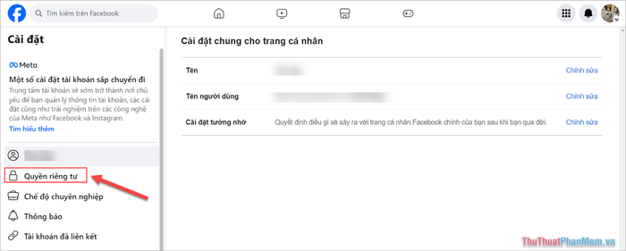 Step 1: Access Facebook, go to Options, and select Settings to view your information.
