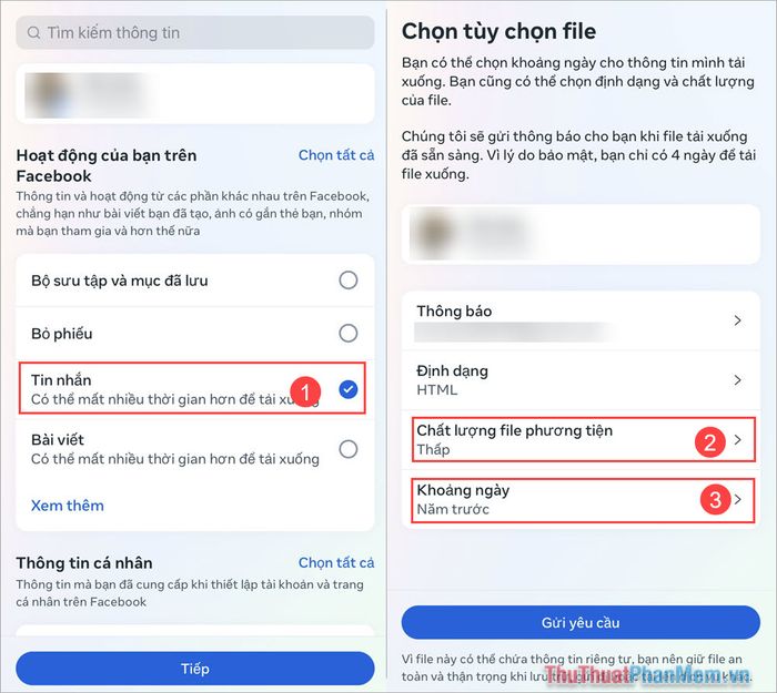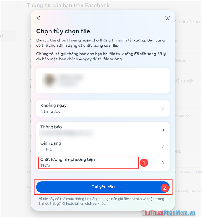 Step 7: To expedite the recovery of recalled messages on Messenger, set Media Quality – Low (1) and choose Send Request (2) to proceed.