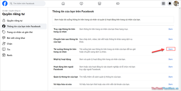 Step 3: In the Privacy Settings section, locate Download Your Information on Profile and choose View to configure.