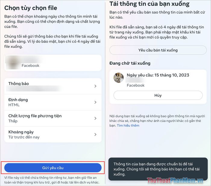 Step 8: Congratulations! You've completed the process of recovering recalled messages on Messenger. Now, await Facebook's notification and download the backup to review. The backup will display all messages in the conversation, including recalled messages from both sides, deleted messages from senders, and recipients.