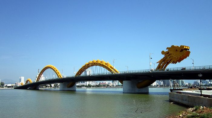 Dragon Bridge – A symbol of Da Nang city that you must visit. Dragon Bridge is a bridge spanning the Han River. If you travel from the airport to the city center, you will pass by Dragon Bridge. On weekends or major holidays, Dragon Bridge is designed to spew fire and water at 9 p.m., attracting many tourists and young locals.