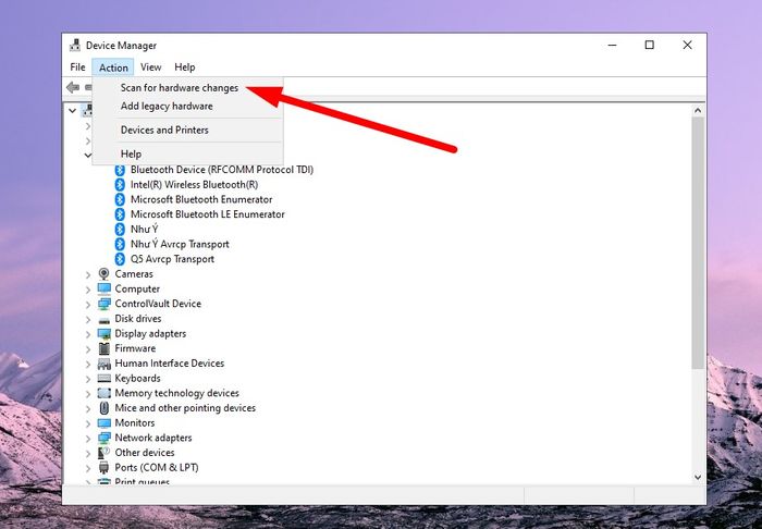 If the Device Manager window doesn't show the Bluetooth section, it means your laptop hasn't integrated this feature yet.