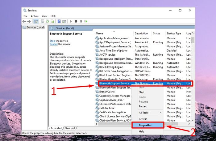 Bluetooth Support Service> Next, right-click on that entry and select