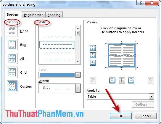 Step 4: The Borders and Shading dialog box appears with the following options: