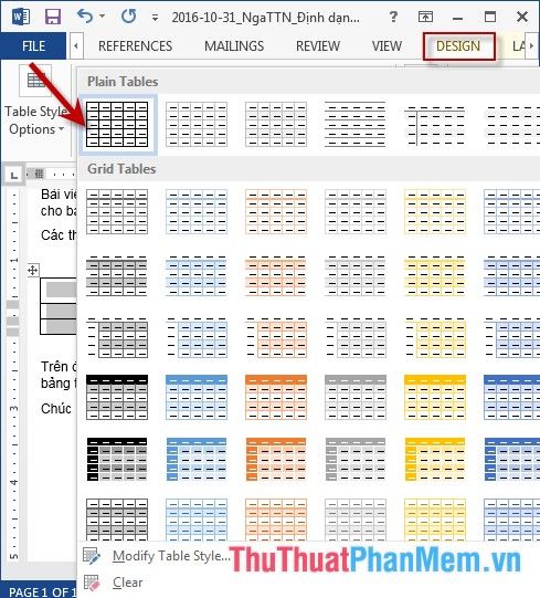 - Quickly format various border styles and background colors for your table by selecting Design -> choose templates that suit your data content.