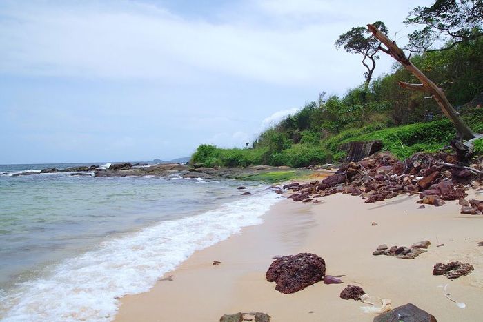 Ganh Dau Cape can be considered a masterpiece of nature embellishing the northern part of the island. This region of Ganh Dau is metaphorically likened to a fish's mouth when comparing Phu Quoc Island to a fish with its tail flicking. The area showcases the harmonious blend of the sea and the forest, with numerous tall, green ancient trees reaching out to the water's edge.