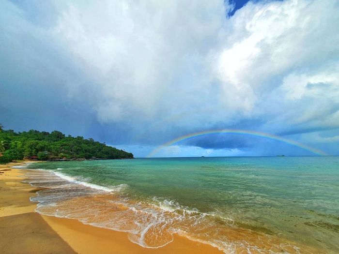 The border with Cambodia, although not marked with flags or columns, has a natural landmark, a large rock floating on the sea called Kho islet. Kho islet consists of 4 floating rocks, including the largest one that tourists can step on to explore.