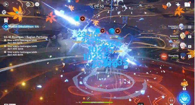 Following Ayato's release, many players immediately tested this character alongside the 'national team', comprising Xiangling – Bennett, and Kazuha. Similar to Childe, Ayato can provide Hydro support while also serving as a high-DPS character, dealing significant damage through elemental reactions.