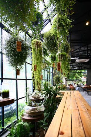 Experience relaxation and tranquility as greenery adorns every pathway, window, and seat, creating a serene atmosphere for patrons.