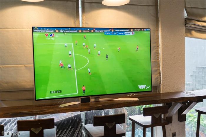 Keep your phone and TV close for better signal strength; being too far may weaken the signal, affecting image quality. With the VTVgo app, when you switch to full-screen mode, your phone screen turns black. You can turn off the phone screen to save battery while still watching football on the TV.
