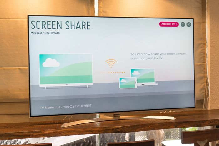 For the TV, usually when you go to the input selection menu, there will be options for smartphone or Screen Share. For TVs using WebOS like LG UH950T, it defaults to Miracast, similar to Samsung's Tizen Smart TVs. However, if you're using Sony's Android TV, you'll have two options: Miracast (direct connection) or Chromecast (connection via Wifi).