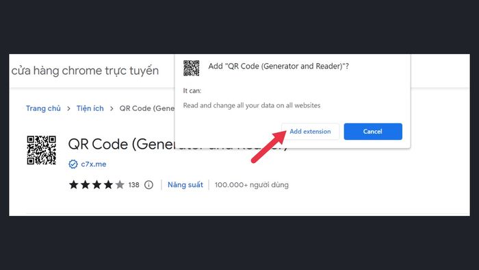 Select Add Extension.After that, the screen will display the QR Code icon result on the Chrome toolbar.