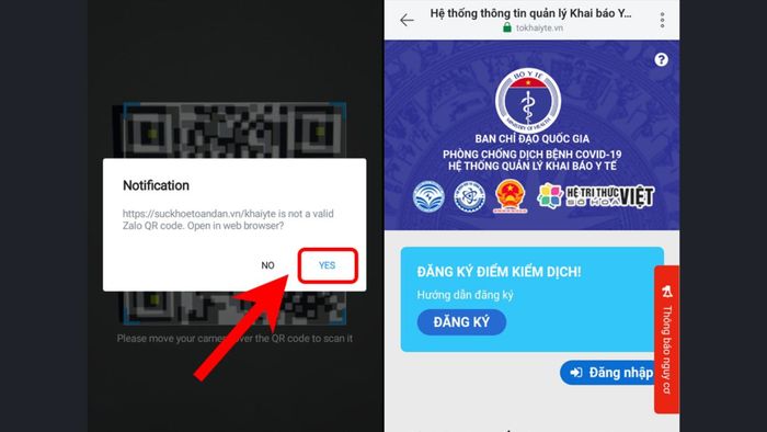 Scan QR code directly in Zalo app.Step 2: Choose Yes to open the link.