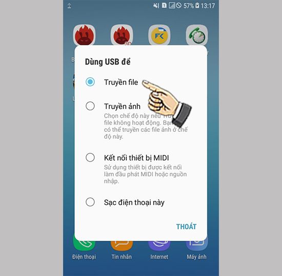 Step 1: Connect the cable to the phone and choose 'Transfer files'.