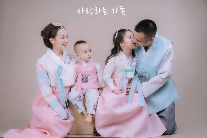 Korean-style family photo concepts are currently very popular due to their meticulousness and sparkling beauty akin to movies. It's advisable to rent studios that are already decorated in the Korean style and encourage the whole family to wear hanbok for a more authentic atmosphere. With traditional posing styles, you'll instantly have a wonderful family photo.