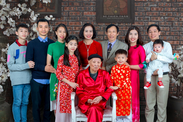- A family visit to the temple: This photo style can be used for any family regardless of generation. Everyone wears traditional ao dai, holding hands while strolling or admiring the temple, which is very meaningful and beautiful.