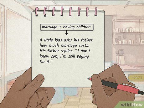 Record humorous ideas in a notebook: Capture amusing thoughts as they arise or document quirky incidents that tickle your funny bone. Initially, focus on jotting down situations, phrases, or personal anecdotes that evoke laughter and have the potential to be developed into jokes later on.