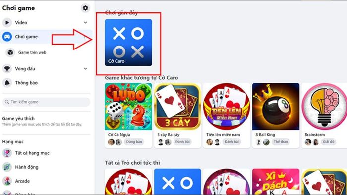 Step 2: In the Facebook Gaming interface, choose the game you want to join. Explore a diverse list with many enticing games and select one that interests you for playing games on Facebook.