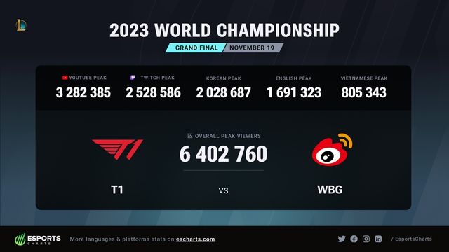 In the finals of the 2023 Worlds, Riot separately recorded over 800k views from VCS at its peak. Combined with the performances of Team Whales and GAM Esports, VCS made a definite impression at the biggest tournament of 2023 in the LoL scene.