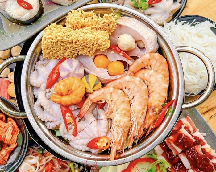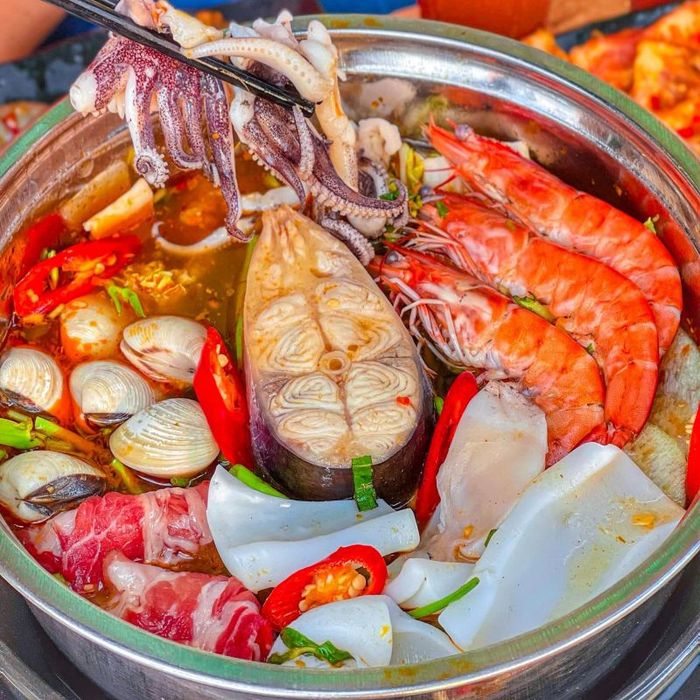 CallWhen talking about delicious Saigon fish hotpot, it's impossible to overlook Large Market Fish Hot Pot. This renowned fish hotpot spot in Tan Phu is highly praised for its consistently high-quality, flavorful broth and fresh variety of fish. At Large Market Fish Hot Pot, you can indulge in an enticing menu featuring options like catfish hotpot, salmon hotpot, snakehead fish hotpot, seafood hotpot, and more.
