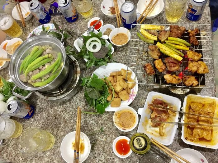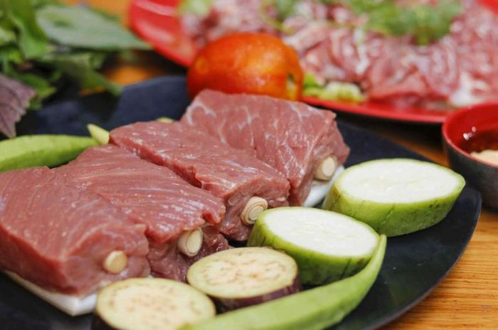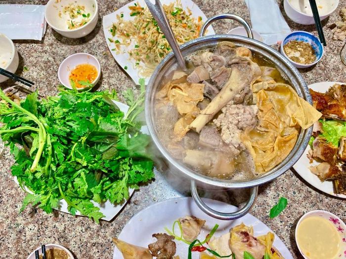 The goat meat is carefully selected, making it soft and not too chewy when dipped in the hot pot. The goat hot pot broth is very rich and flavorful. Eating goat hot pot with vermicelli and various vegetables is harmonious and appeals to many tastes. In particular, the goats at the Anh Ba's Goat Hot Pot are carefully chosen and processed professionally to ensure the highest quality, without any unpleasant odor for diners. A special point at Anh Ba's Goat Hot Pot is the dipping sauce, which, when combined with other dishes, is very rich and enhances the deliciousness of the food, attracting customers when they come to the restaurant.