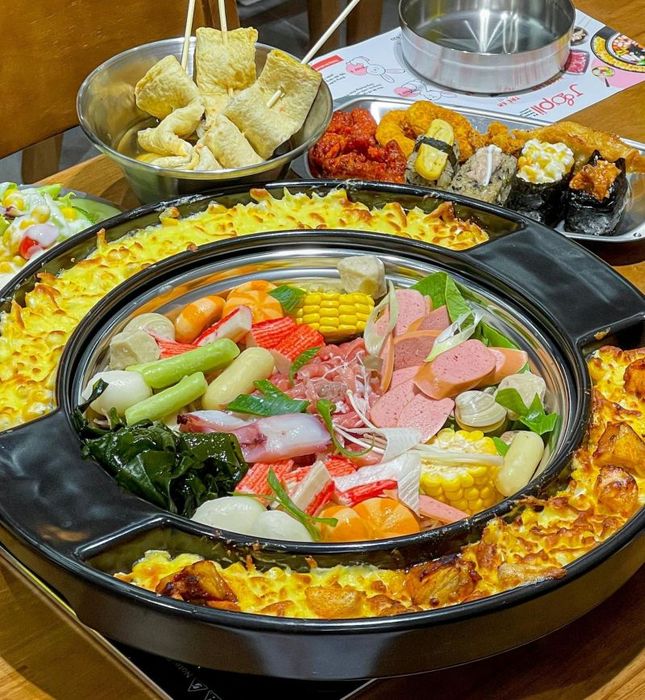 Joopii is also an ideal stop for those looking for a quality tokbokki hot pot address in Ho Chi Minh City. The buffet here still includes tokbokki hot pot, nearly 60 snacks and drinks, promising to bring a satisfying meal. The hot pot toppings include various types and shapes of rice cakes, accompanied by hot pot balls, clams, sausages, shredded fish cakes, crab sticks, eggs, and more for you to choose from. Every day, Joopii welcomes many customers. When enjoying tokbokki hot pot here, you will understand why diners highly appreciate this place. All dishes are carefully selected for ingredients, ensuring safety for your health.