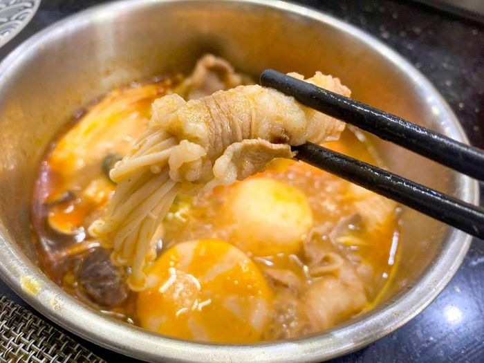 The uniqueness of Hutong - Hot Pot Paradise lies in the hot pot broth made from 36 ingredients such as herbs, cinnamon, and cardamom, with the essence of nutritious bone broth simmered for 48 hours, following the chef's secret recipe. With a traditional à la carte serving style, Hutong - Hot Pot Paradise offers 7 unique hot pot flavors, with the most outstanding being the Hong Kong spicy hot pot, nutritious ginseng hot pot, and Malaysian hot pot. Along with the hot pot, enjoy over 99 unique dipping items including various meats, seafood, balls, vegetables, mushrooms, and many special appetizers like offal stew with tofu skin, and beef tendon stew with hair.