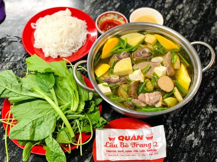 Call NowTrang 2 Beef Hotpot now offers delivery through various online food ordering apps, making it convenient for those with a busy schedule but still want to enjoy a delicious meal at home. This excellent beef hotpot spot in Tan Phu District provides both outdoor and indoor seating. The restaurant is bright, airy, with fantastic meals, fragrant hotpot broth, and perfectly balanced spices. Particularly, the hotpot set is abundant with fresh and clean meat, and the accompanying dishes are superb.
