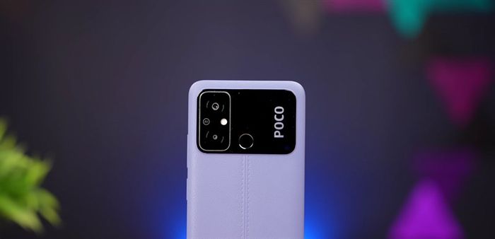 POCO C55 boasts a unique faux leather back along with IP52 water resistance capability. Source: Tech Unboxing.In addition to the above advantages, the back of POCO C55 also features highlights from the 'cat-eye' camera cluster and fingerprint sensor placed in a large black frame, which is very familiar. The rear camera cluster of the device has two large lenses, a small round AI logo located in the top left corner, and the additional 'POCO' brand name on the right. This contributes to enhancing brand recognition for the device.