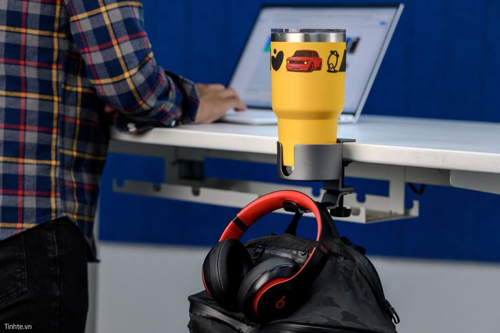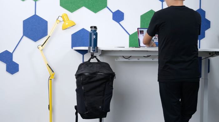 Having an accessory like this cup holder seems quite fitting. It will help organize your workspace as items like water cups, backpacks, or headphones will have designated spaces. Moreover, it reduces the risk of spills. For backpacks, keeping them off the floor also prevents them from getting dirty. I personally dislike placing my backpack on the ground; it keeps it clean and well-maintained.