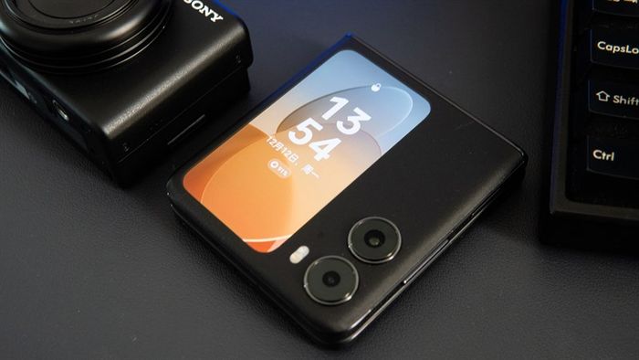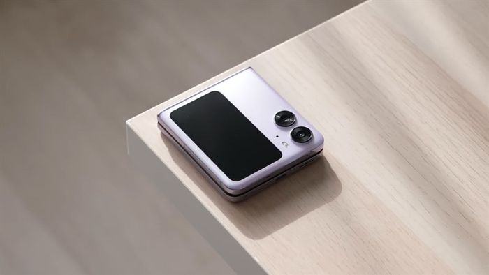 Looking from the back, this area of OPPO Find N2 Flip is crafted from a matte metal material, glossy glass in various colors, providing the device with an attractive and durable appearance. This design also minimizes sweat and fingerprint marks, ensuring a comfortable grip. Moreover, the device's frame is finished in a soft, curved style, providing a relatively snug and comfortable feel when holding it in folded mode.