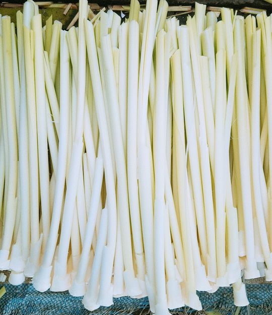 Fresh radishes are cleaned, cut into pieces, and then dried in the sun until completely dry. Then they are mixed with rock salt, adding some spices to allow them to absorb into the radishes. Similarly, for preserved elephant ear bulbs, a little rice wine is added during the marinating process. After marinating for about 2 weeks, they are ready to be consumed.