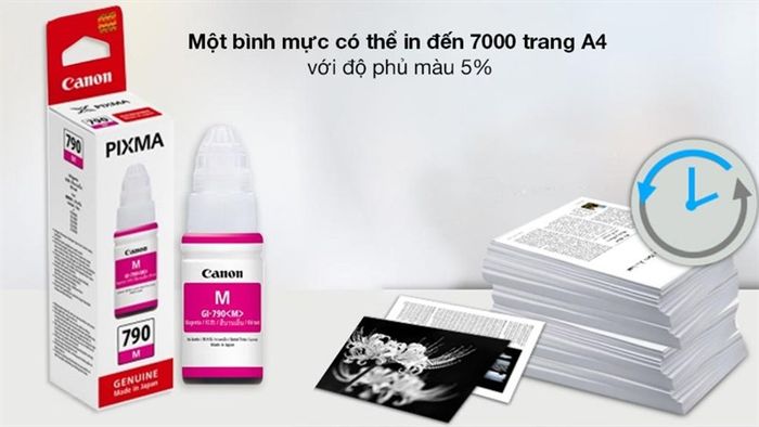 Furthermore, with just a 70ml ink bottle, the Canon GI-790 Yellow ink cartridge can print up to 7,000 pages of documents or images. Promising to meet the maximum printing needs of businesses or individuals.