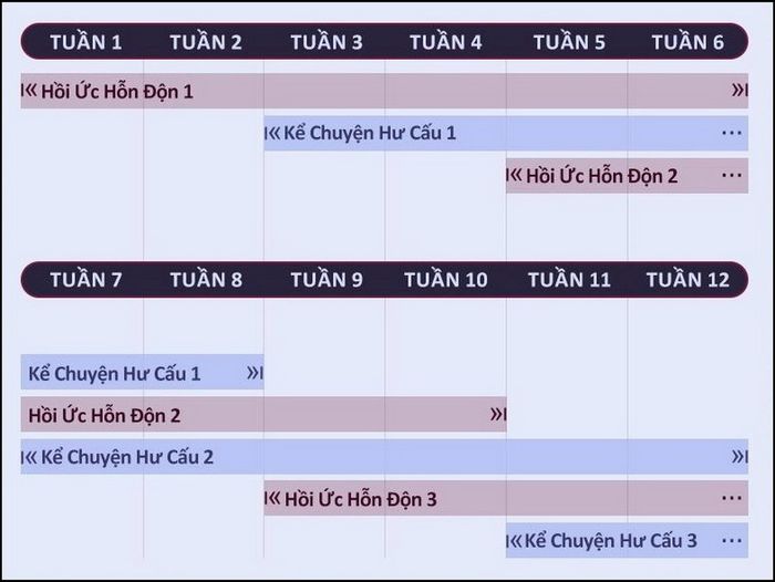 Finally, miHoYo also announces a new feature that will appear alternately with Chaotic Memories this time. It's called 'Fantasy Storytelling,' specific gameplay and the amount of rewards are yet to be revealed, but Mytour predicts it will also be 600 Primogems or more. This new feature will be interleaved with Chaotic Memories. The chart shared by miHoYo below will help you understand better: