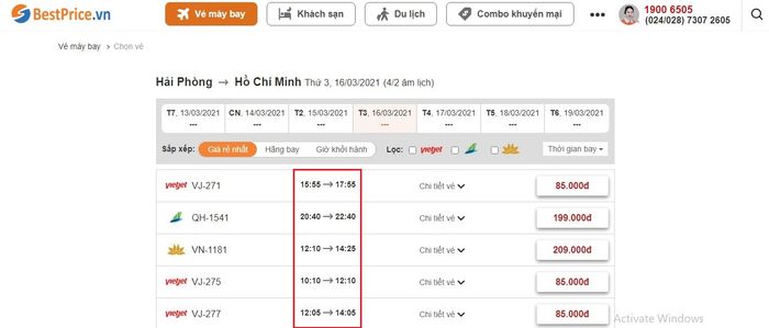 To secure affordable flight tickets from Hai Phong to Ho Chi Minh City, refer to the specific price list of airlines below: