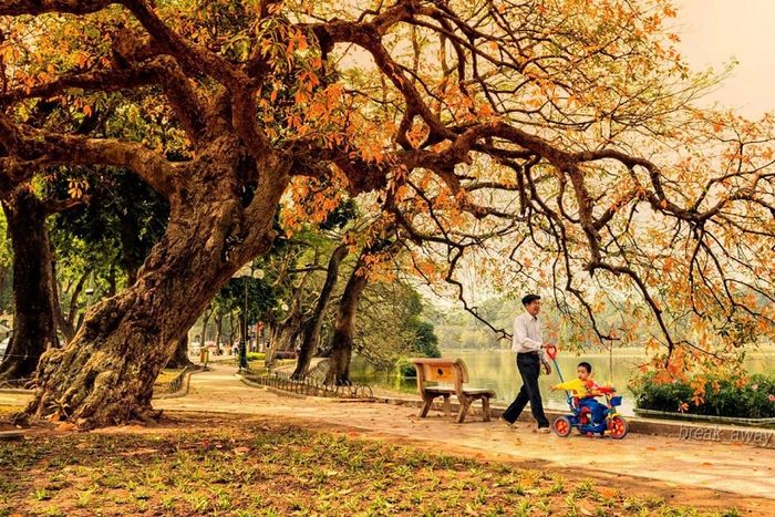 Experience autumn on Hoan Kiem Lake, Hanoi.