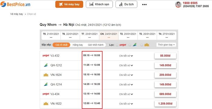 - The flight prices from Quy Nhơn to Hanoi do not include additional taxes and fees.