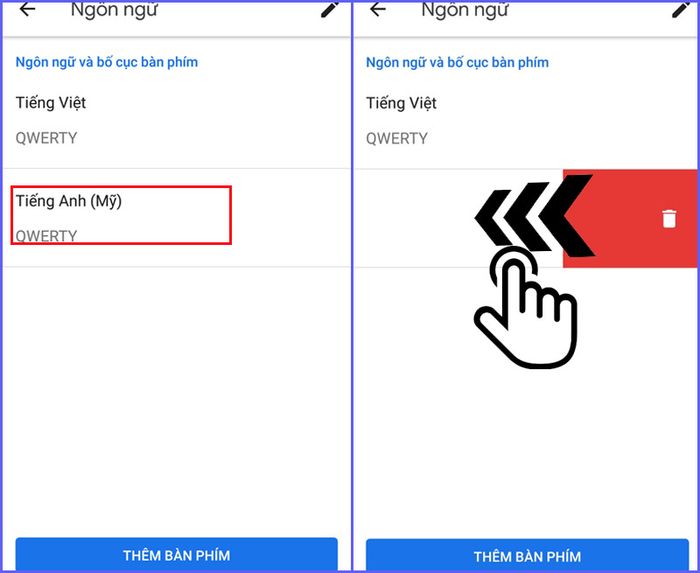 Select the language you want to delete and swipe left