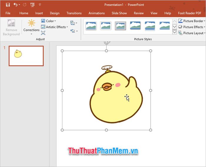 After successfully inserting the animated image into the Slide, you can click on it to move it to the appropriate position on your slide.