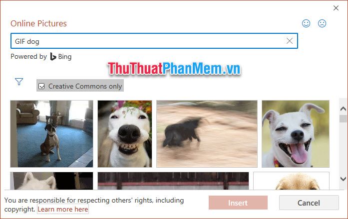 When inserting images from the internet, you need to search for them along with the GIF keyword.
