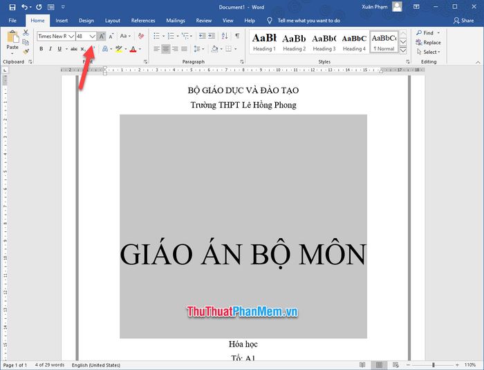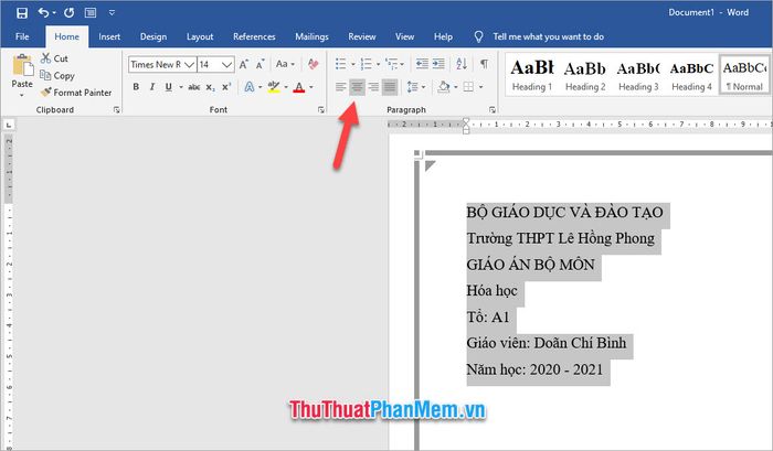 Now, start editing the spacing between the lines. As you know, the spacing between lines in the lesson plan cover is usually large, such as the title often being in the middle and far from other lines.