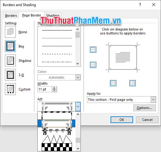 At that point, the Borders and Shading function window will appear, it will automatically switch to the Page Border tab for you so you don't have to switch tabs anymore.