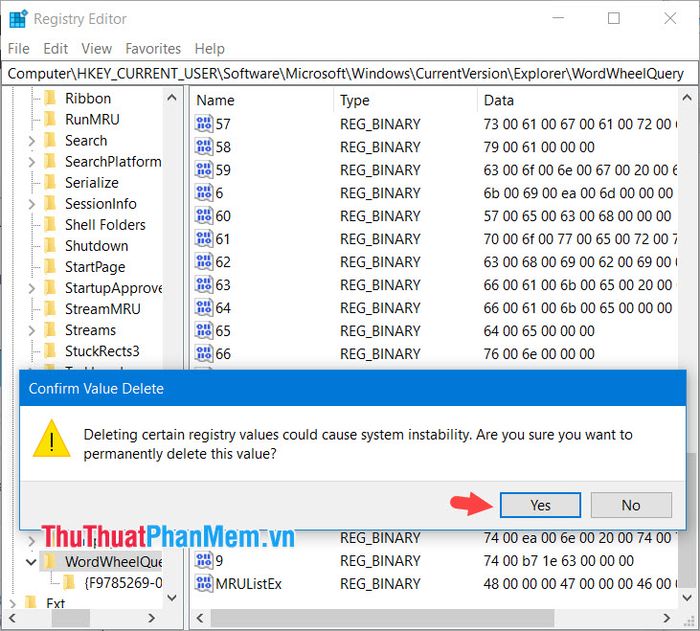 Step 2: Access the Registry with the following path: HKEY_CURRENT_USER\SOFTWARE\Microsoft\Windows\CurrentVersion\Explorer\WordWheelQuery.