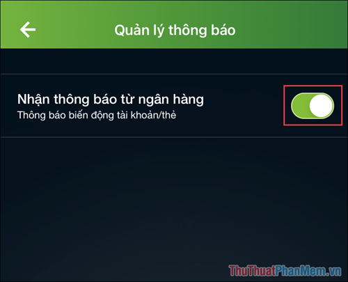 Step 4: Now, activate the Receive notifications from the bank feature, and the system will automatically disable SMS Banking on your account.