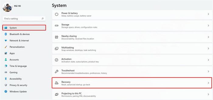 Step 1: Navigate to Settings and select System > Click on Recovery section.