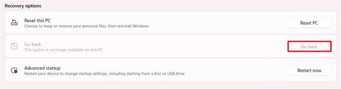 Step 2: Then choose Go back under Recover options (If unable to click Go back, restart your computer).